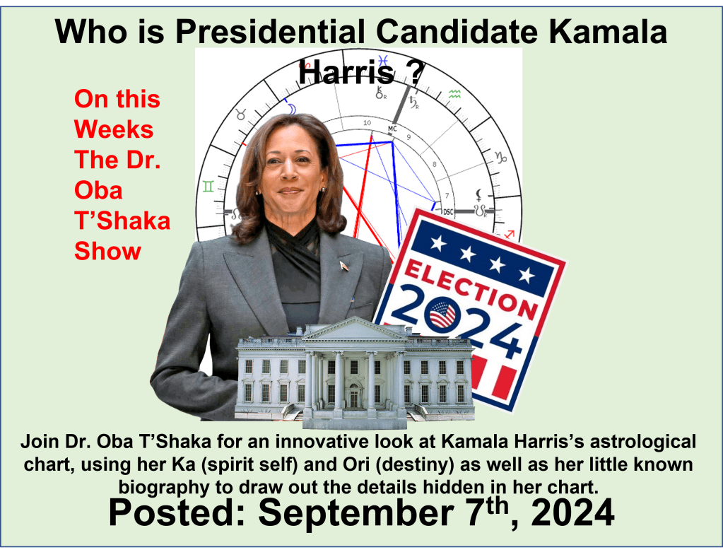 FIRST THOUGHT OF THE EPISODE IDEA: This is the followup, the second part to Episode #165. Having already discussed in detail, the answer to the question posed in this episode’s title (in Episode #164), thus laying a biographical foundation for V.P. Kamala Harris; this episode, like its predecessor, uses Harris’s natal chart along with the Kemetic Ka concept (see episode #023) and the Yoruba Ori concept (see episode #133 for a thorough explanation on the idea) to explain her three life phases, focusing more on her upbringing and childhood then any other phase. Dr. T’Shaka further emphasizes the political importance of the time we are living through. History is literally being made by our choices. More than any other time in the life of his youtube channel, Dr. T’Shaka encourages the viewer to actively participation in politics. A message many in the livestream chat discourage, especially if their vote would be cast for Harris. But, to their objections, Dr. T’Shaka presents stern but logical answers. I encourage you to take some time to consider his advice and to process the knowledge presented within this episode, absorbing it; linking it to your understanding of astrology. In doing so remind yourself that Dr. T’Shaka’s innovative approach grows the foundational framing and use of the practice.