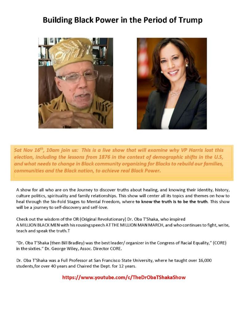 ORIGINAL YOUTUBE DESCRIPTION: This is a live show that will examine why VP Harris lost this election, including the lessons from 1876 in the context of demographic shifts in the U.S, and what needs to change in Black community organizing for Blacks to rebuild our families.