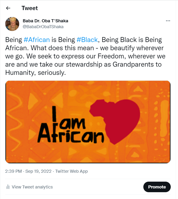 Originally Tweet – Being #African is Being #Black, Being Black is Being African. What does this mean – we beautify wherever we go. We seek to express our freedom, wherever we are and we take our stewardship as Grandparents to Humanity, seriously.
